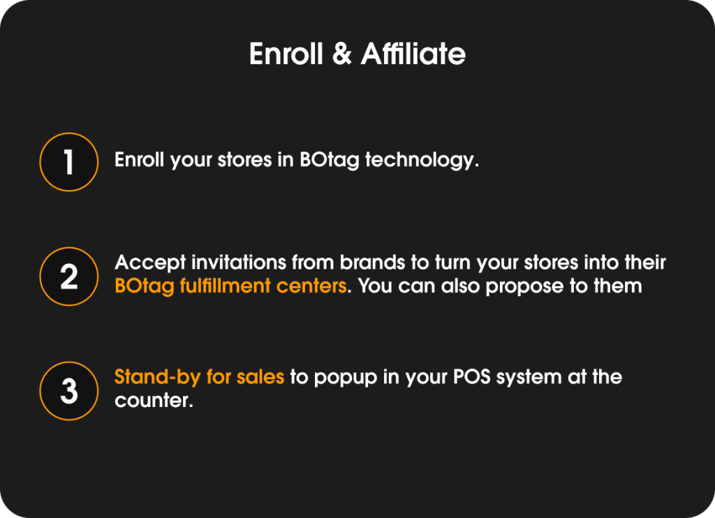 On your BOtag technology account, you can generate invitations that are sent by email. Each store must follow the guidelines provided in the email. You will be notified when a store is ready to become your brand’s fulfillment center.