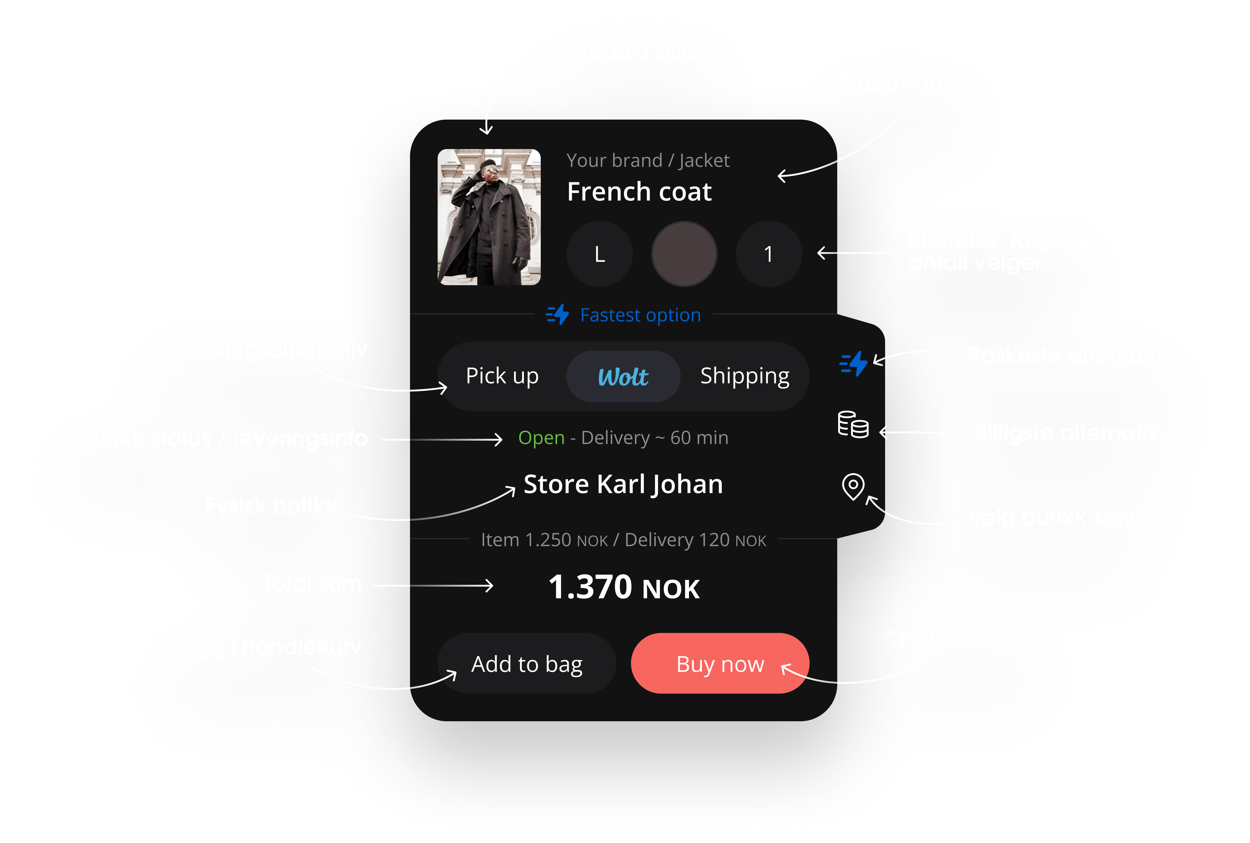 Hent i butikk, Wolt, shipping