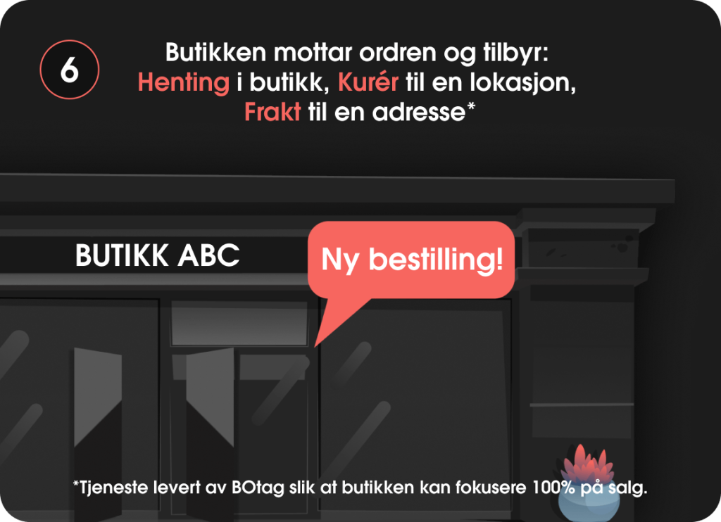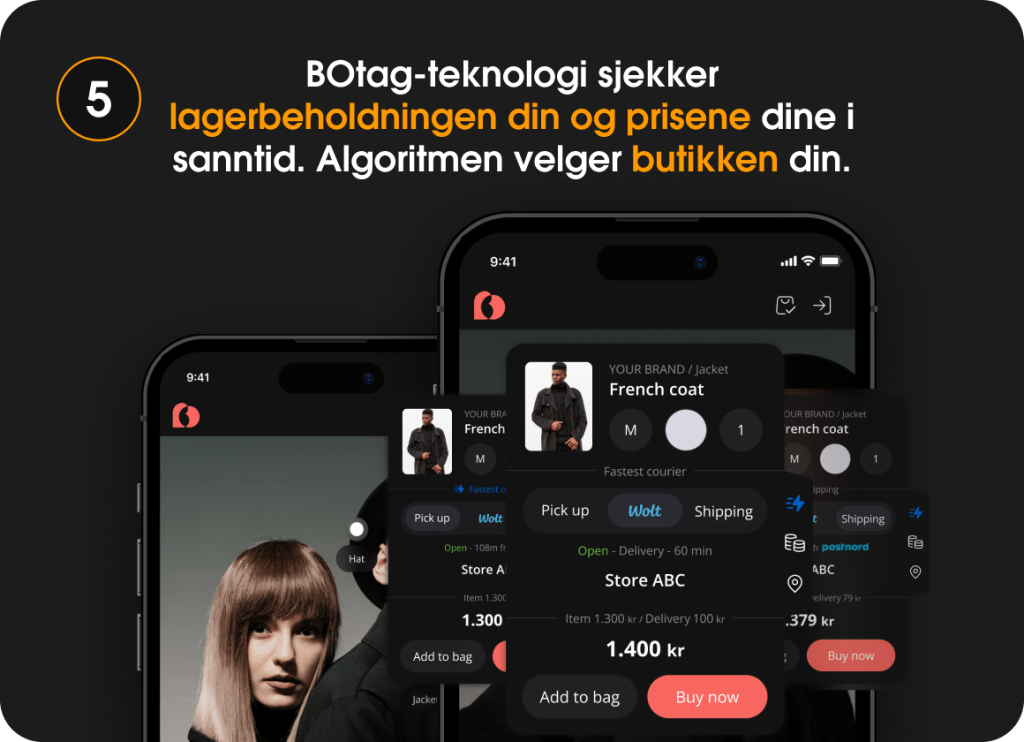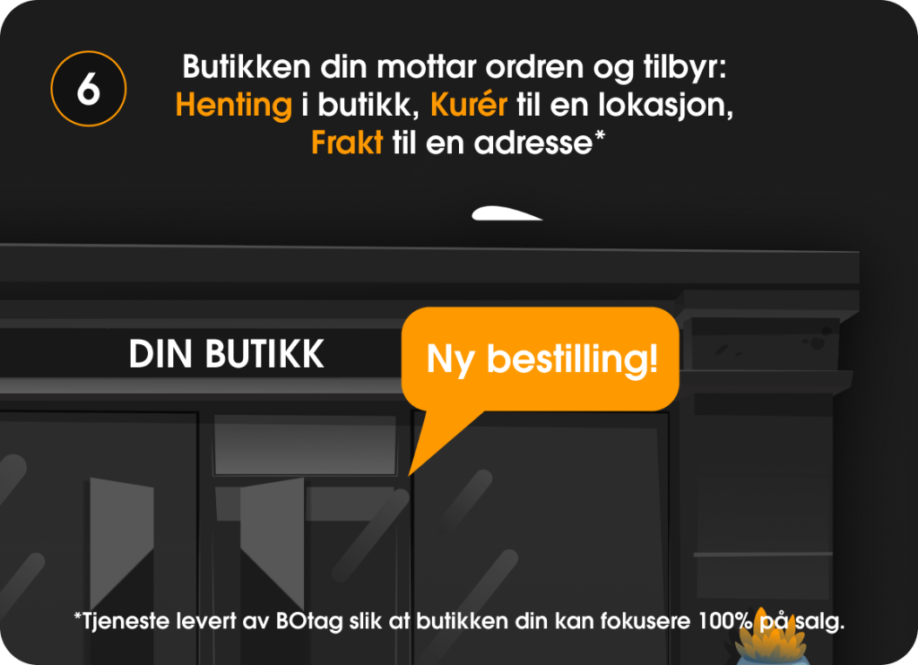 Ja. Når du registrerer deg i BOtag-teknologi som et BOtag-oppfyllingssenter, tilbyr du automatisk kundene dine muligheten til henting i butikk, levering med Wolt til kundens lokasjon eller frakt til kundens adresse.